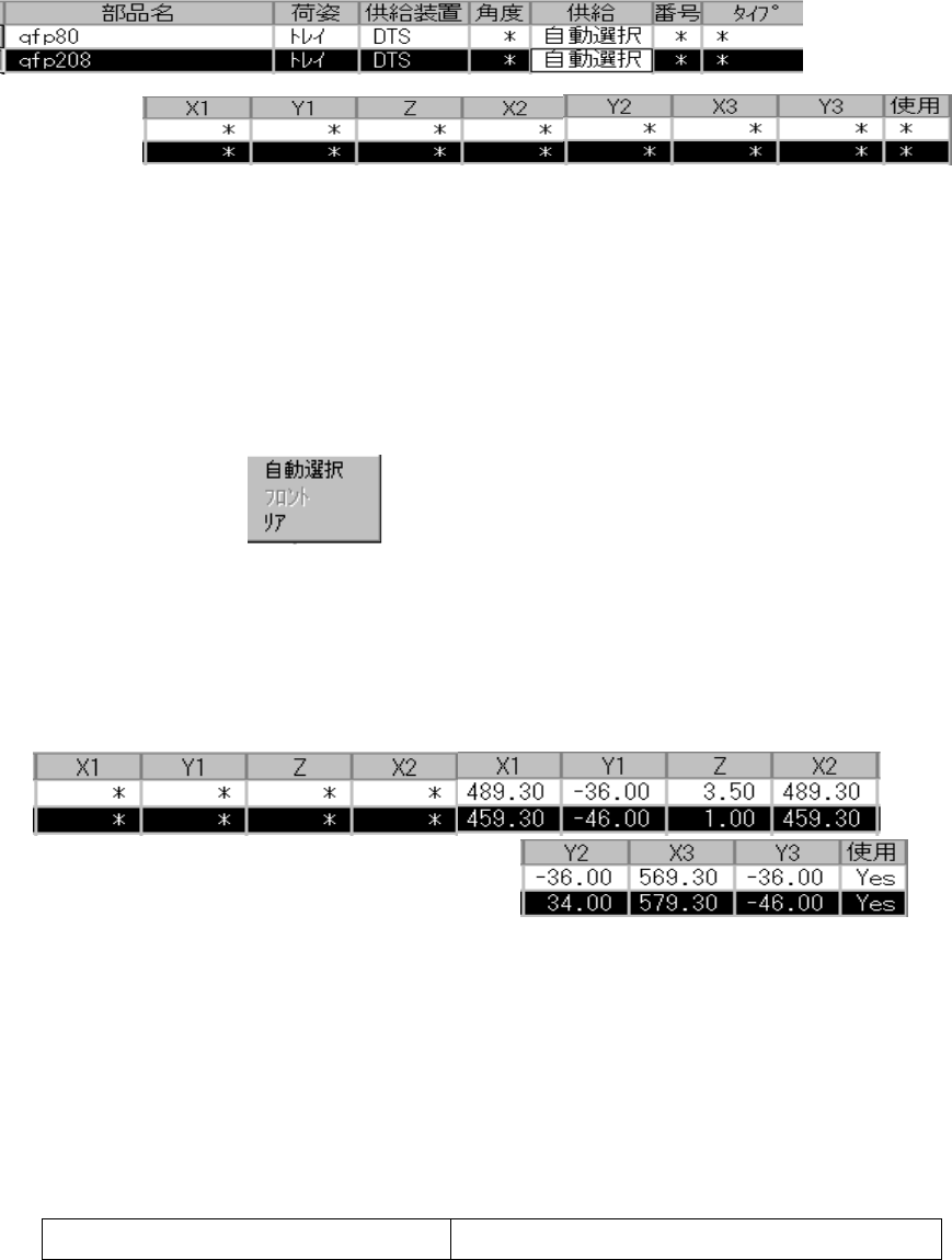 ● 荷姿、供給装置は部品データで設定された内容が表示されます。