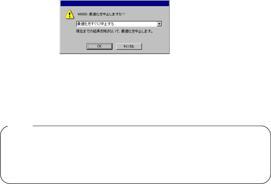 最適化中止確認メッセージ最適化中止確認メッセージ