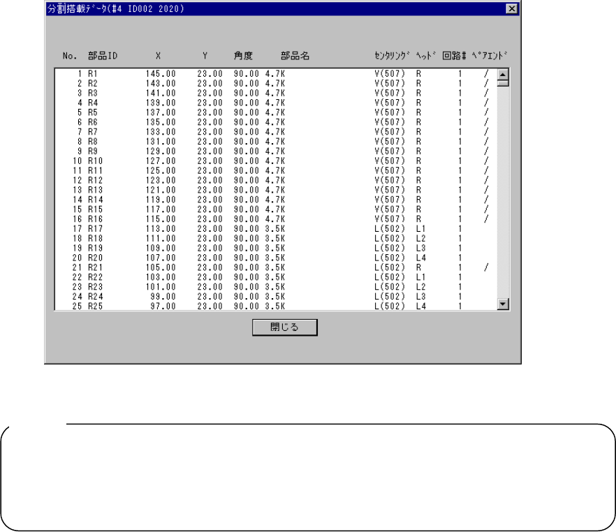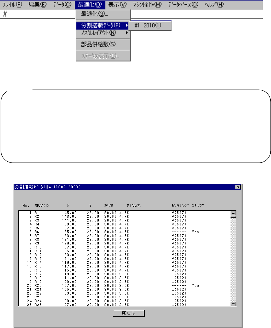 分割搭載データ表示例(最適化順の場合)分割搭載データ表示例(最適化順の場合)