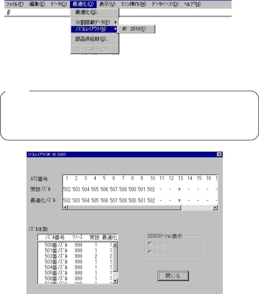 最適化が各ステーションに配置したノズルを表示します。