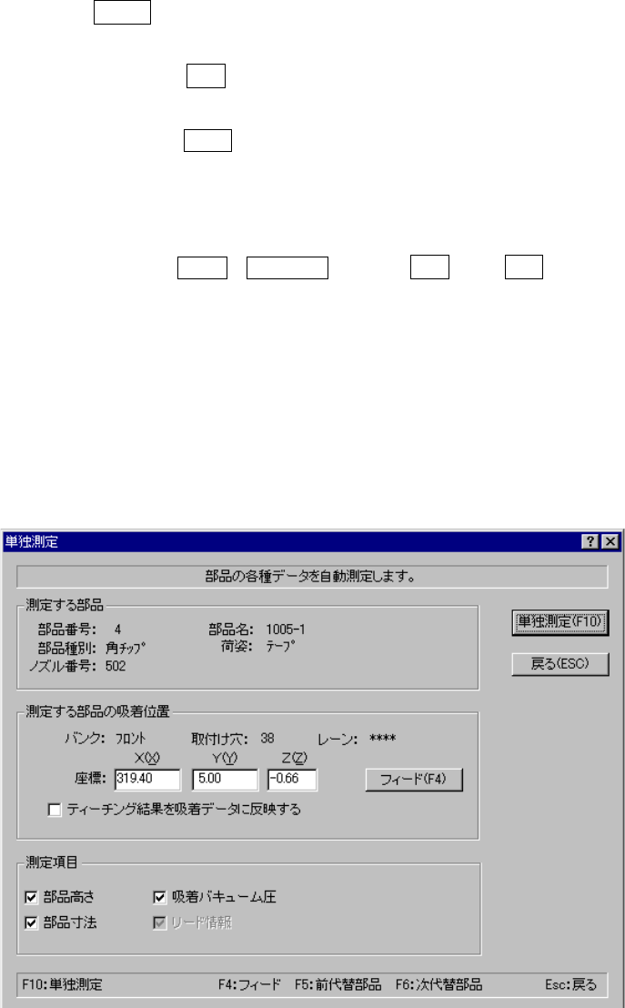 <単独測定>(F10キー)ボタンを選択すると測定が実行され,測定が終了すると測定結