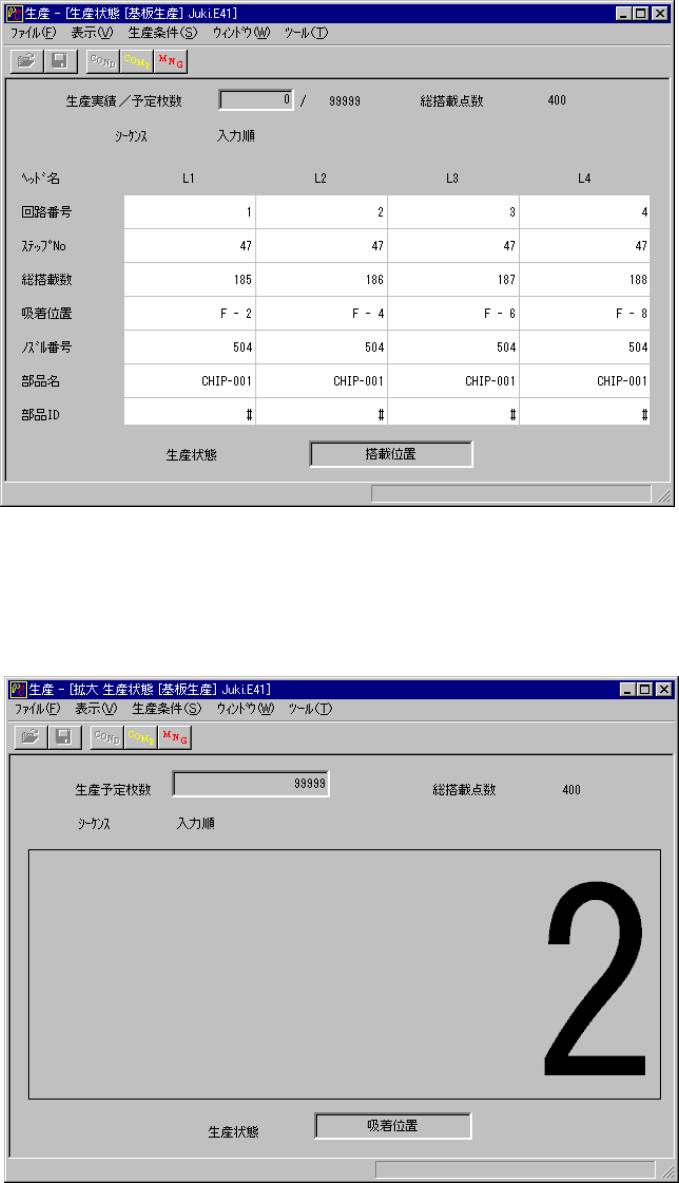 生産実行の通常時の生産状態表示を図 6-2-2-1 に,操作オプションの“生産(表示)”タグで“生