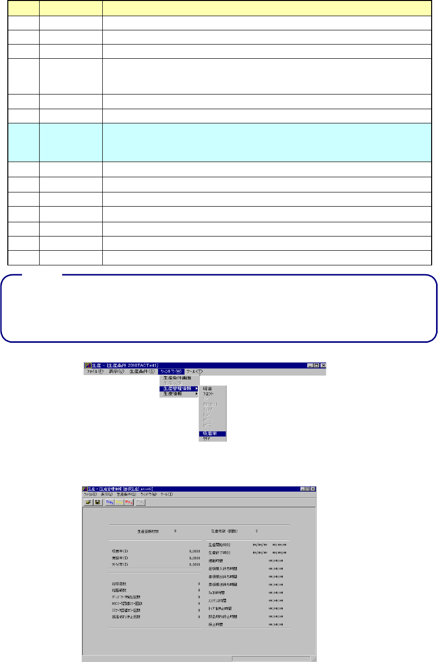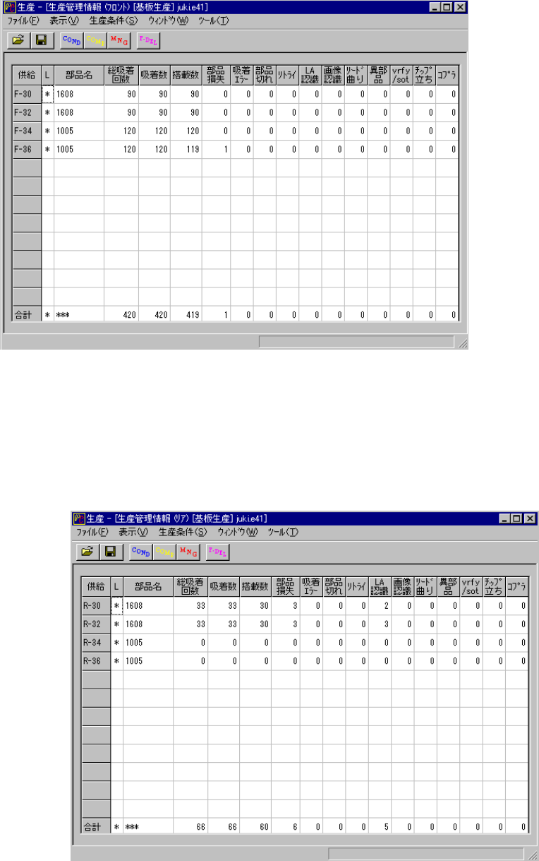 生産管理情報はメニューバーの[ウィンドウ → 生産管理情報 → リア]により 図 6-2-3-1-3 を
