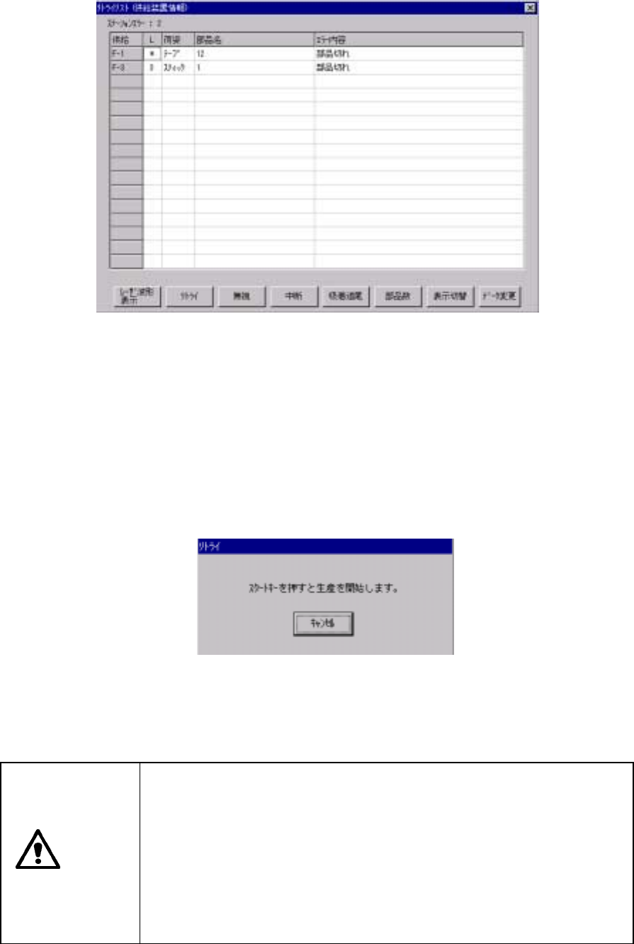 生産中のリトライリスト表示は,生産の続行を行うかどうかの判断をする為に表示されます。従っ