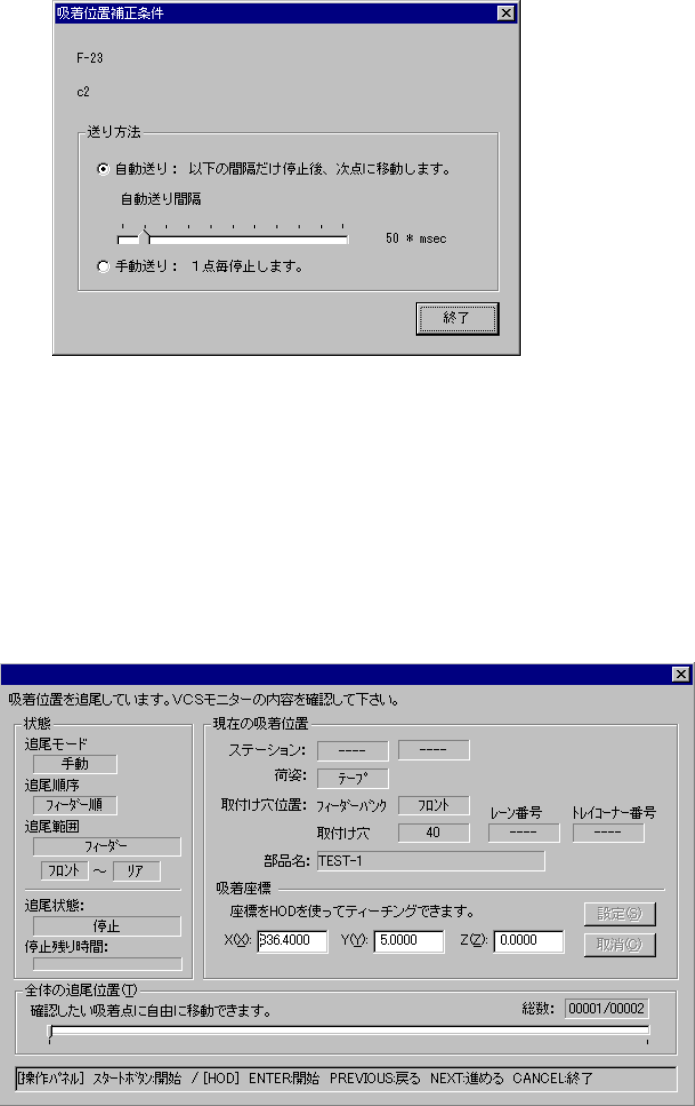 追尾動作は終了しても吸着位置補正条件ダイアログに戻るだけなので,何度でも繰り返して追尾