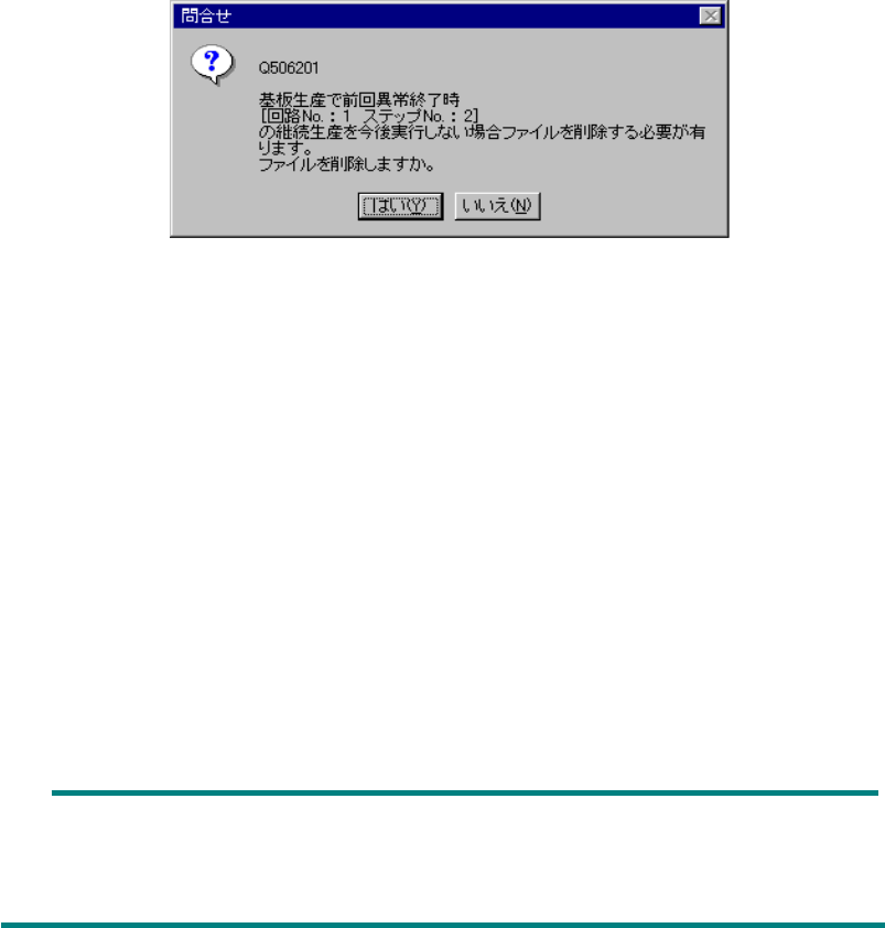 継続生産データ削除確認ダイアログ継続生産データ削除確認ダイアログ