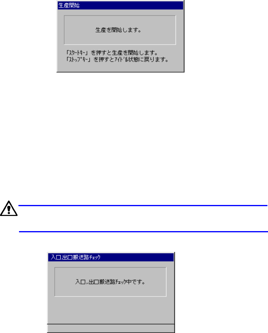 るいは、新規生産動作前に、入口,出口搬送路チェックダイアログが表示され、生産開始前に入