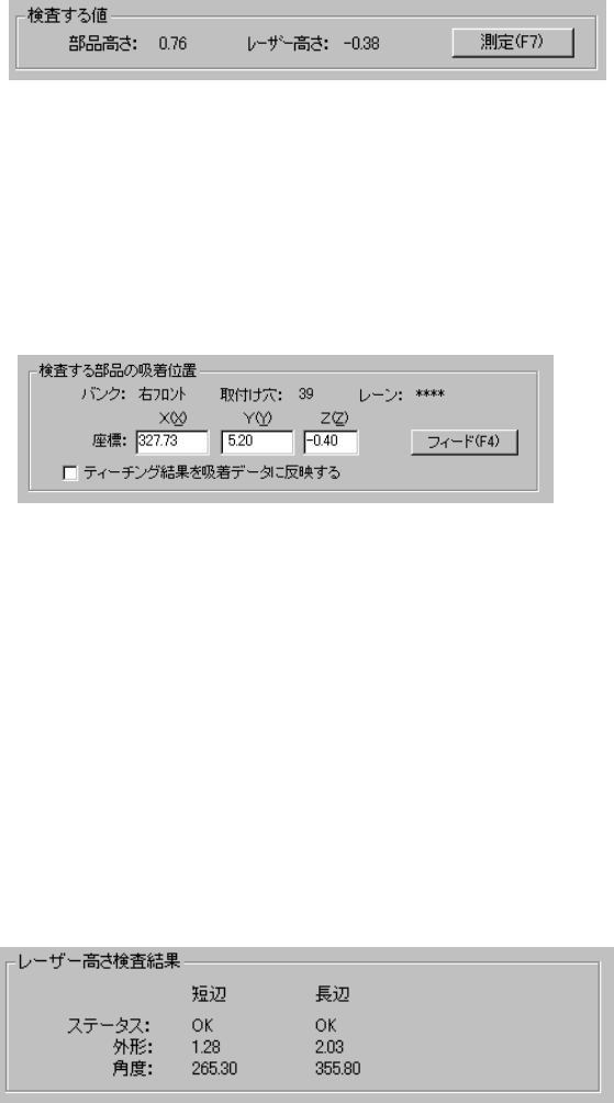 検査を行う部品のレーザ高さおよび部品高さが表示されます。