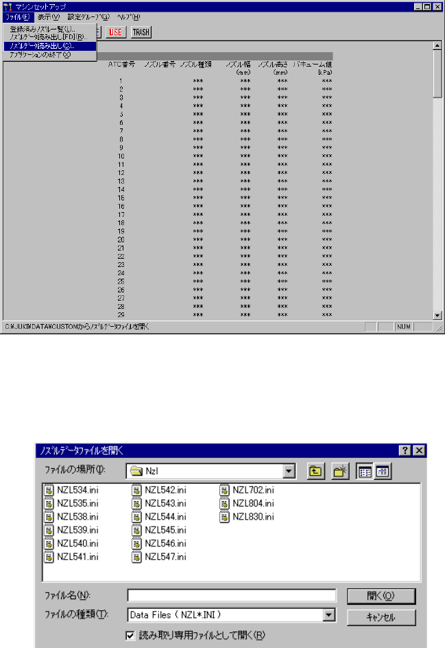 から「ノズルデータ読み出し」を選択すると「ノズルデータファイルを開く」ダ