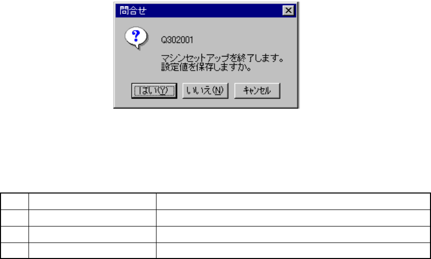 マシンセットアップグループで設定値の変更を行った場合に、保存を行うかどうかの問い合わせダ