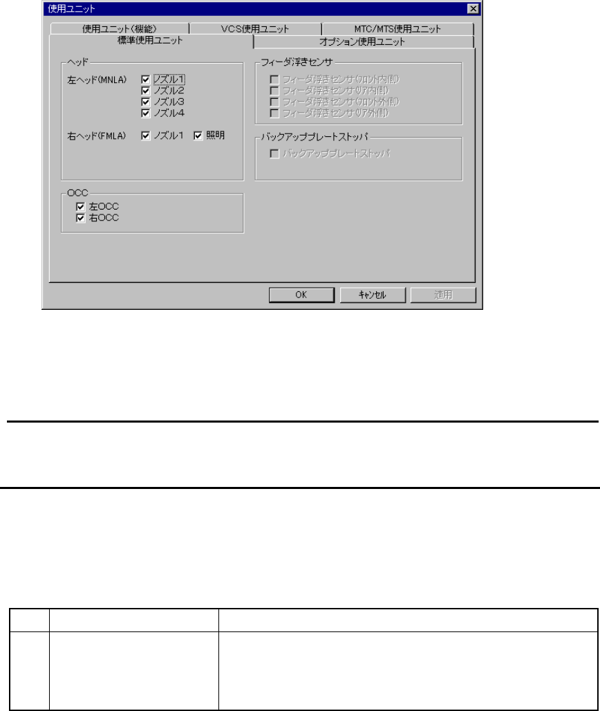 オプション使用ユニット設定のダイアログオプション使用ユニット設定のダイアログ