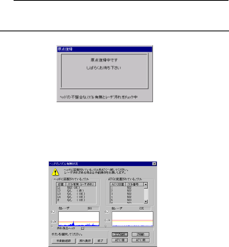 レーザ汚れチェック中表示画面(原点復帰)レーザ汚れチェック中表示画面(原点復帰)