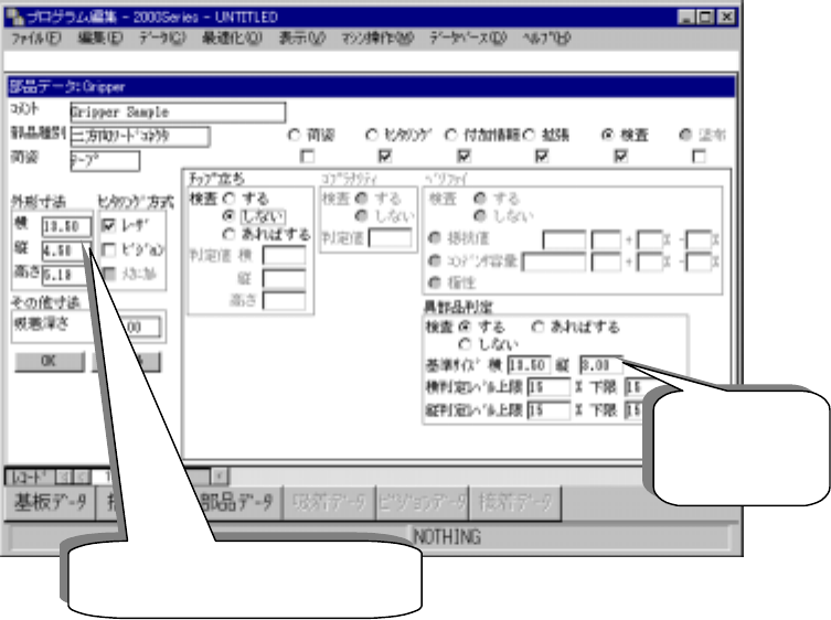 吸着データは、通常のノズルを使用する場合と変わりません。従ってグリッパーのアーム位置