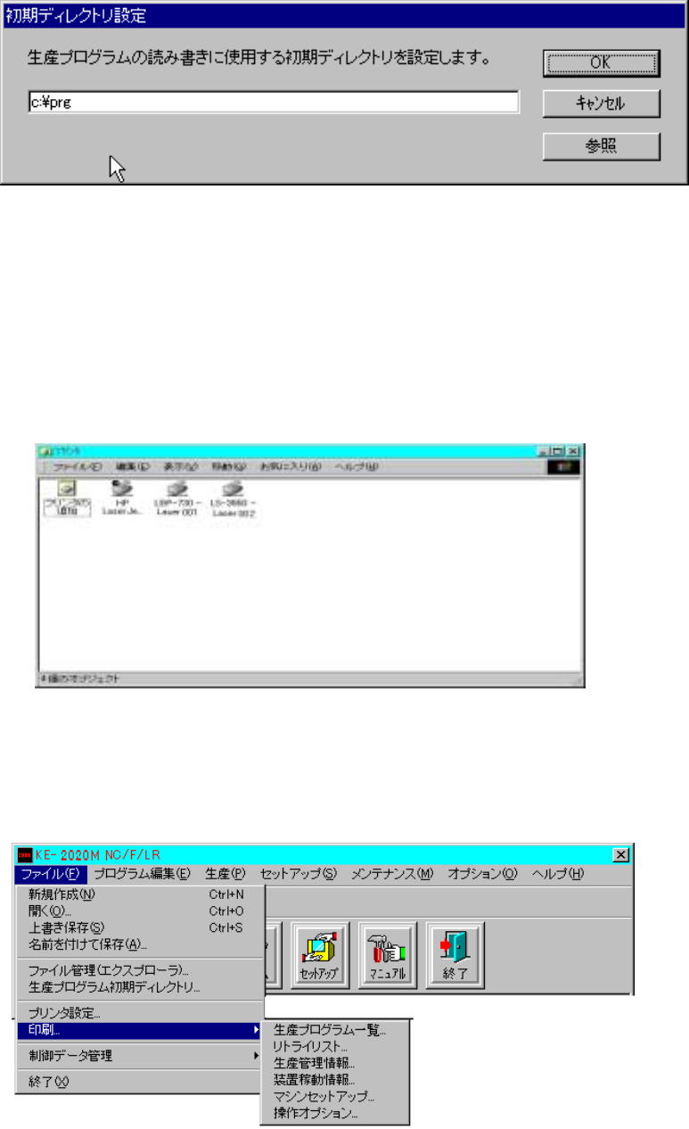 メインメニュー「ファイル」→「生産プログラム初期ディレクトリ」で、下記のダイアログが現われます。
