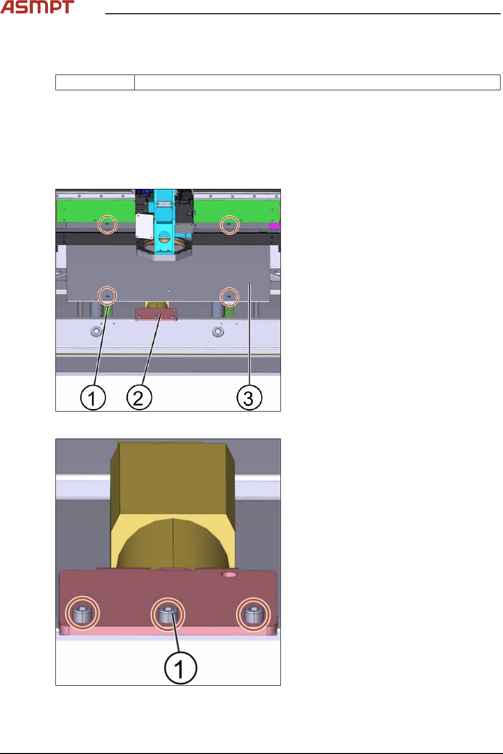 ► Fasten the 3 screws(1) off the lifting table