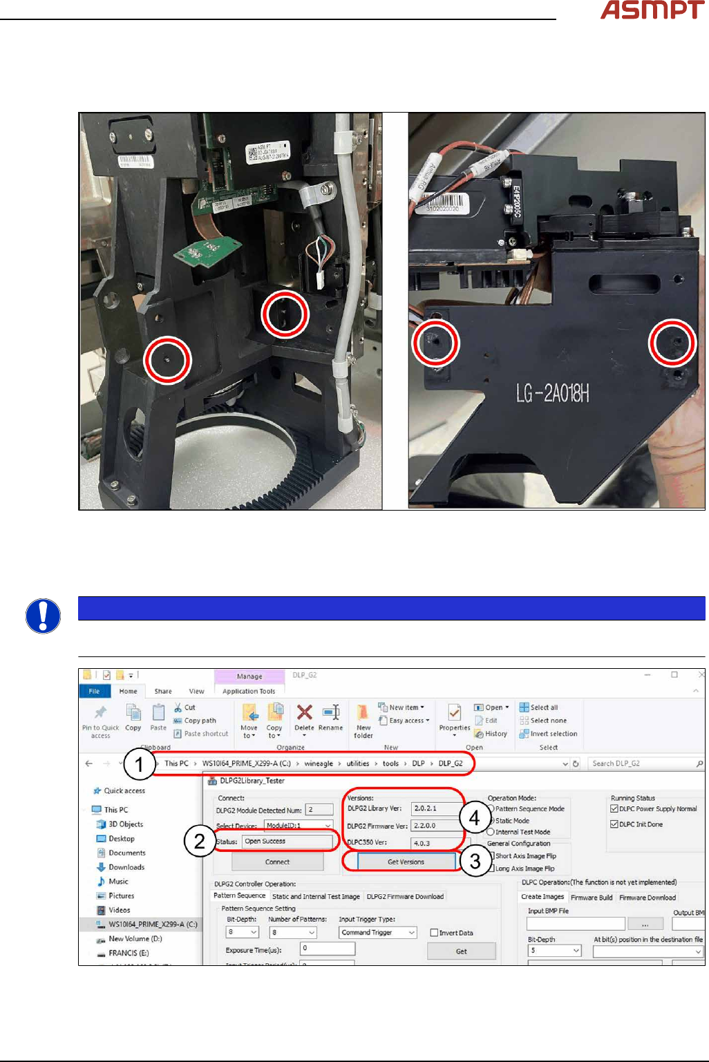 3 Replacing spare parts 32 Se rv ic e Ma nu al P ro ce ss L en s PL - 0 3/ 20 25 ► Open the file c:\wineagle\utilities\tools\DLP\DLP_G2\DLPG2Library_Tester(1) on the station computer . ► Select Left DLP ModuleID:0(2) a…