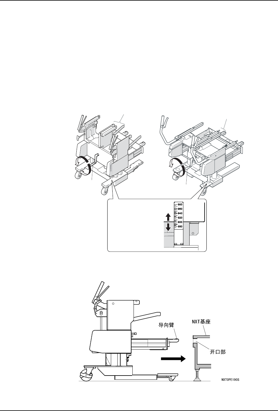 导向臂的高度一边推入 PCU。当高度不一致时,请旋转手柄进行微调整后插入。