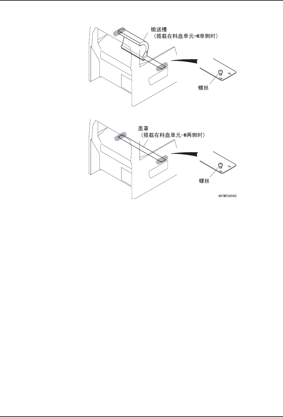 2. 使用拆除的螺丝,安装与料盘单元 -M 相对应的槽或者盖罩。