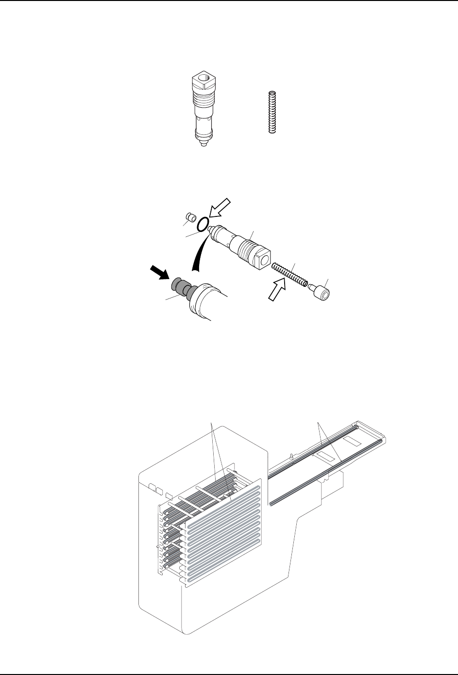 10.清扫后组装分解的空心轴 Assy。此时,请在 O 型圈和弹簧上轻轻地涂抹润滑油。组装后