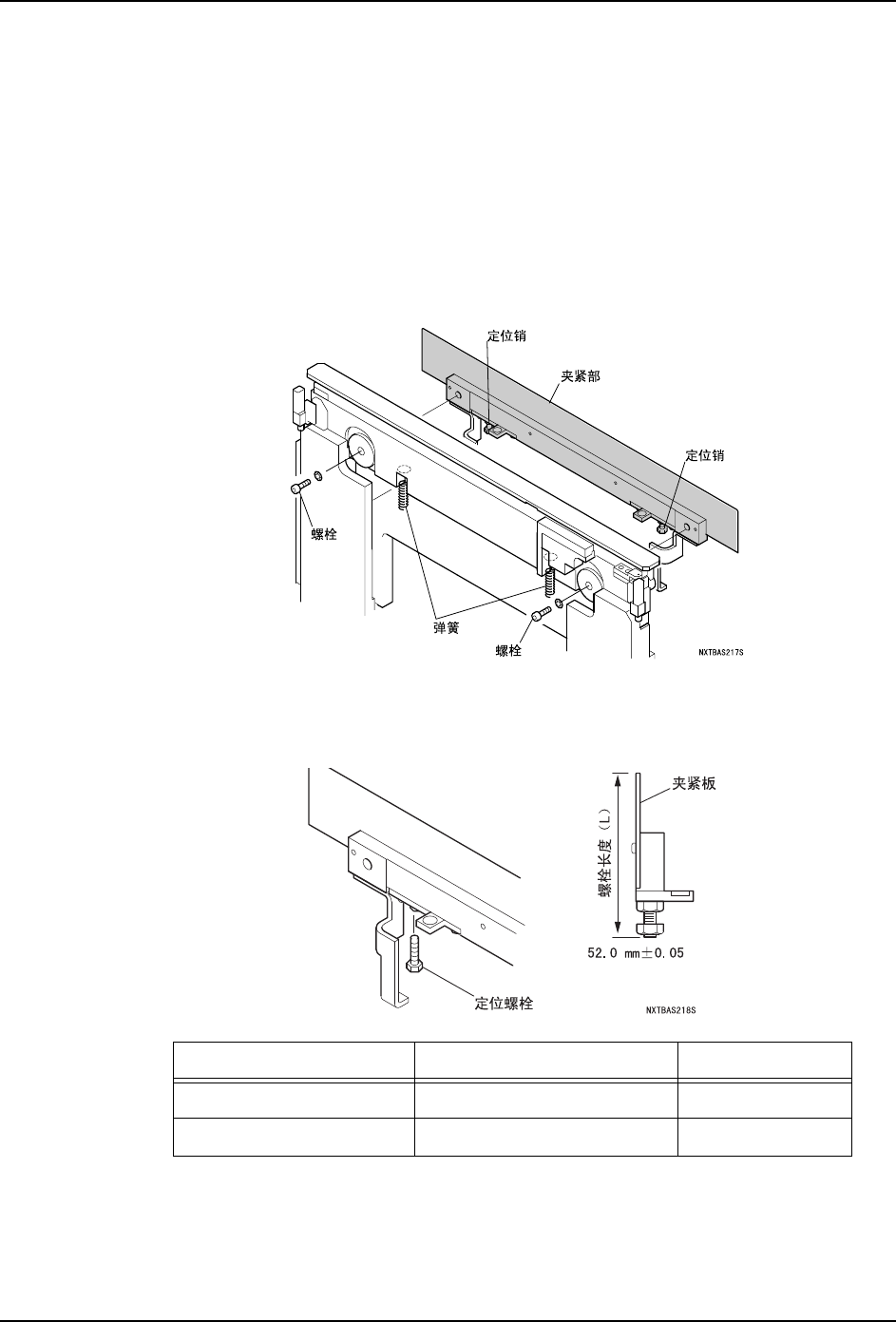 4. 请更换定位螺栓。新安装的定位螺栓请使用千分表从夹紧板上侧按规定尺寸进行固定。