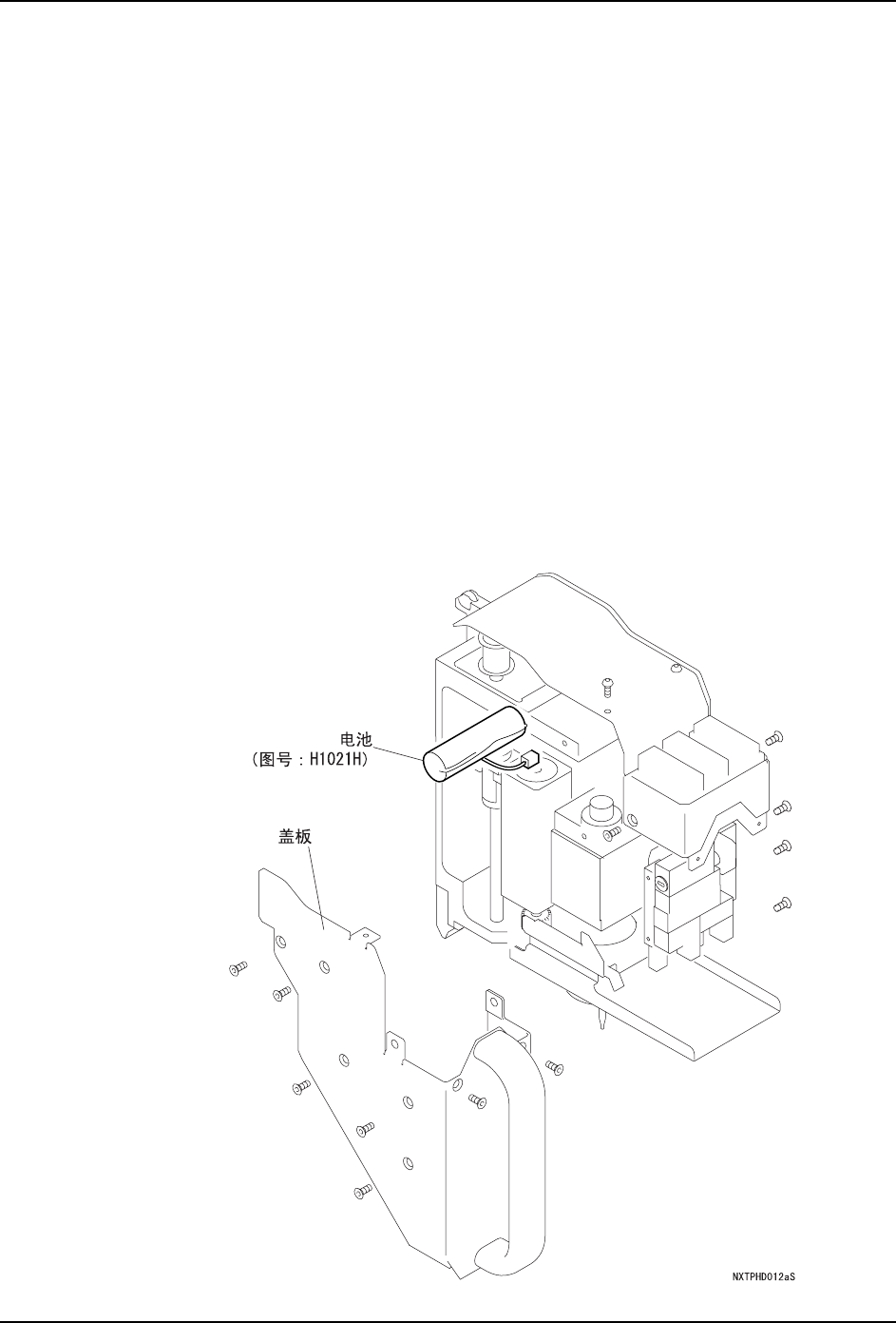 2. 取下贴装工作头的电池盖板 ( 参考下图 )。在此,请不要取下电池。