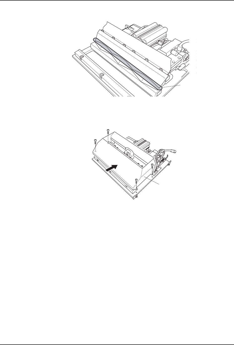 7. 消耗品的更换 QD145-04 318 NXT Ⅱ机械手册 17.请使用干净的布、脱脂剂,擦 去可动刀刃安装面间隙之间的污垢。 18.如下图所示的状 态,使用刮刀对可动 刀刃安装面的间隙 涂敷油灰。如果在不需要的 部分 附着了油灰时,请用布擦去。 19.请将废料带处理单元从对齐刀刃调整 治具上取下,放置在操作台上。 20.请使用干净的布、脱脂剂,擦去滑槽 盖板前端部和可动刀刃的污垢。 21.请在滑槽盖板前端涂敷油灰。 尽可能往盖板…