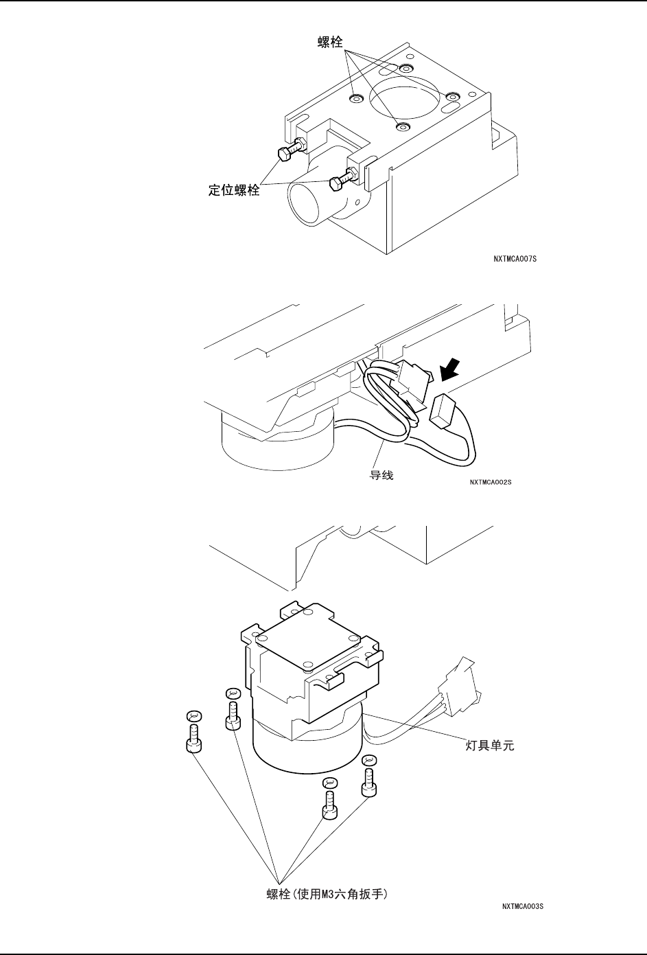 QD145-04 8. 部件的更换 NXT Ⅱ机械手册 327 7. 按照与拆下时相反的顺序安装新的单元 。 注意 )请在相机单元的前端装有的定位栓碰到灯具单元为止,向前滑动后固定相机单元。 8. 将主电源开关 ON 后接通模组的电源。 9. 插 入模组。 (参考 " 5.1 模组的拉出 / 插入 ")