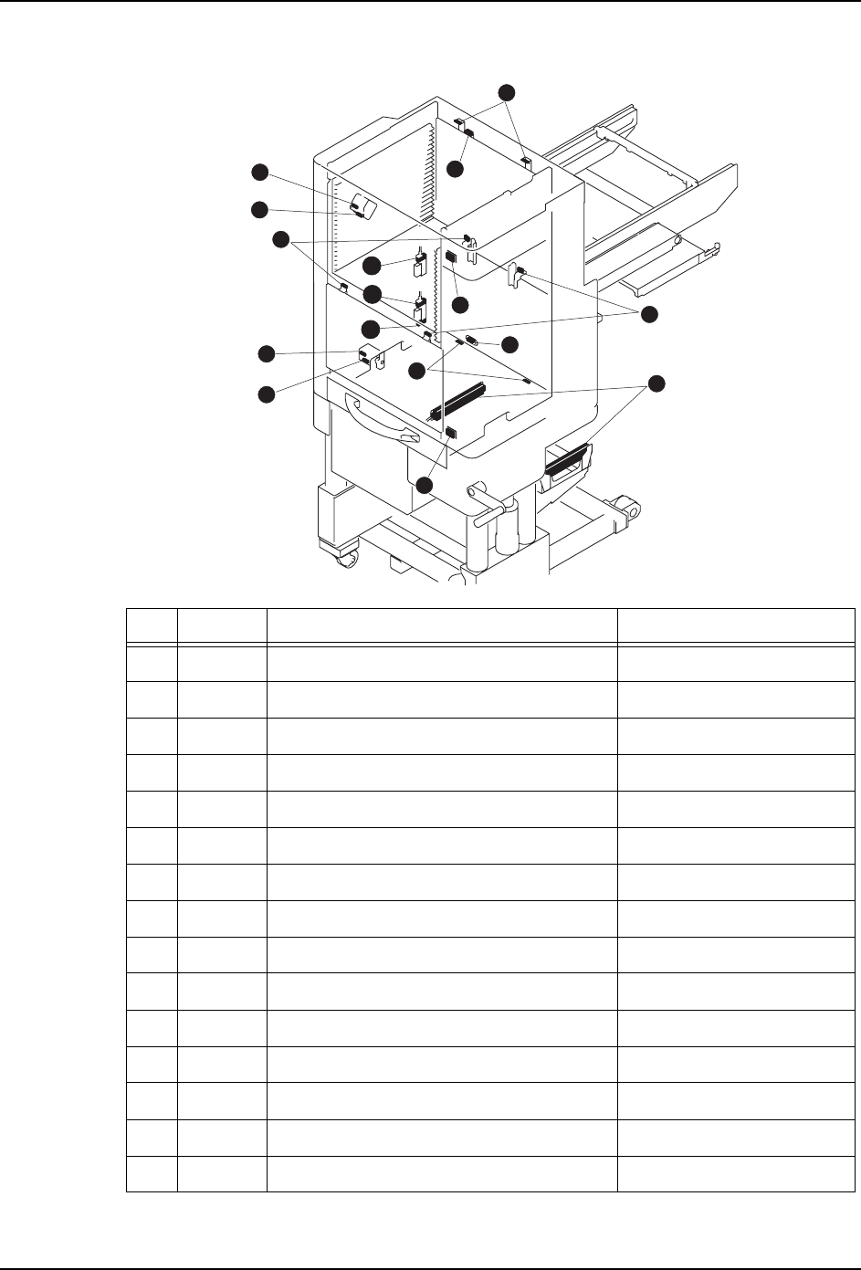 QD145-04 4. 传感器配置图 NXT Ⅱ机械手册 69 4.13 料盘单元 -L 4.13.1 安全门 No. 地址 信号名 传感器名 1 IN00 上部安全门关闭确认 - 2 IN01 后面安全门关闭确认 - 3 IN02 下部安全门关闭确认 - 4 IN04 紧急 停止 - 5 IN1E 供应结束 SW - 1 2 5 3 4