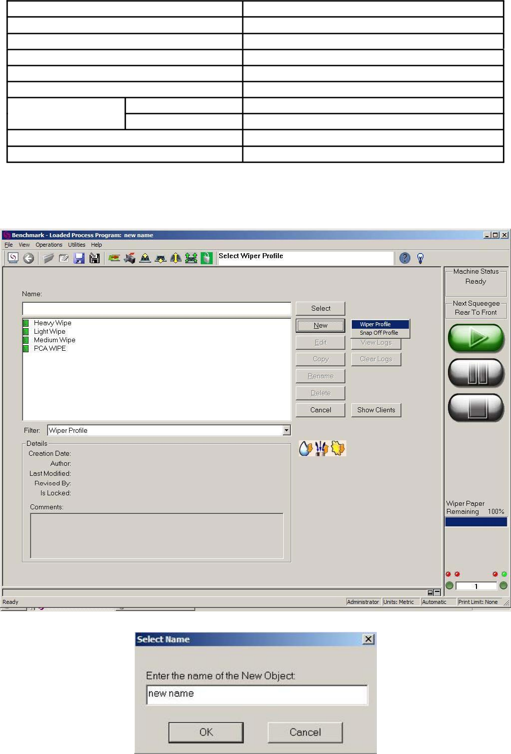 4.9.1.1 Wiper Profile: 擦拭子程式,在 Wiper 页面或在 Benchmark 主画面菜单栏依次选择