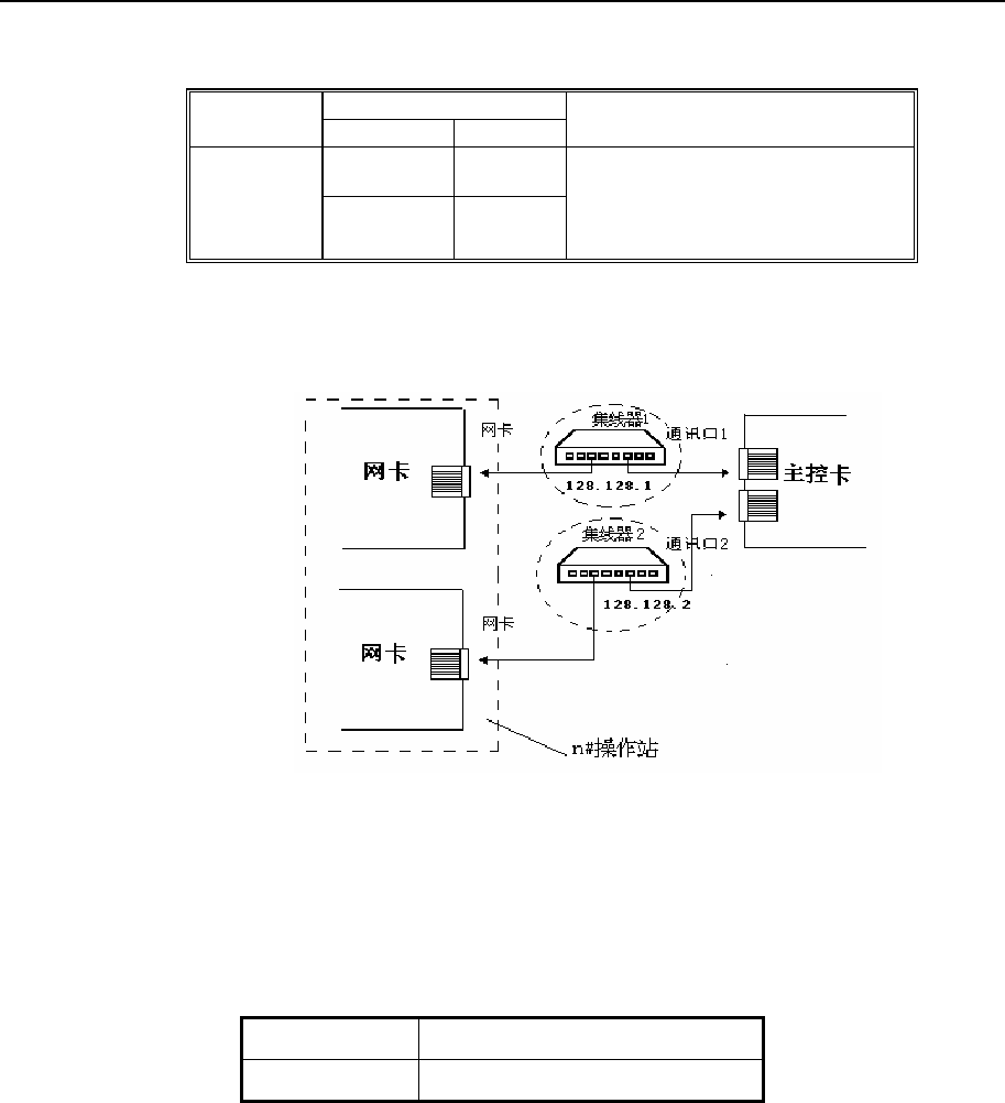 表 2-2 中网络码 128.128.1 和 128.128.2 代表两个互为冗余的网络。在控制站表现为两个冗余的