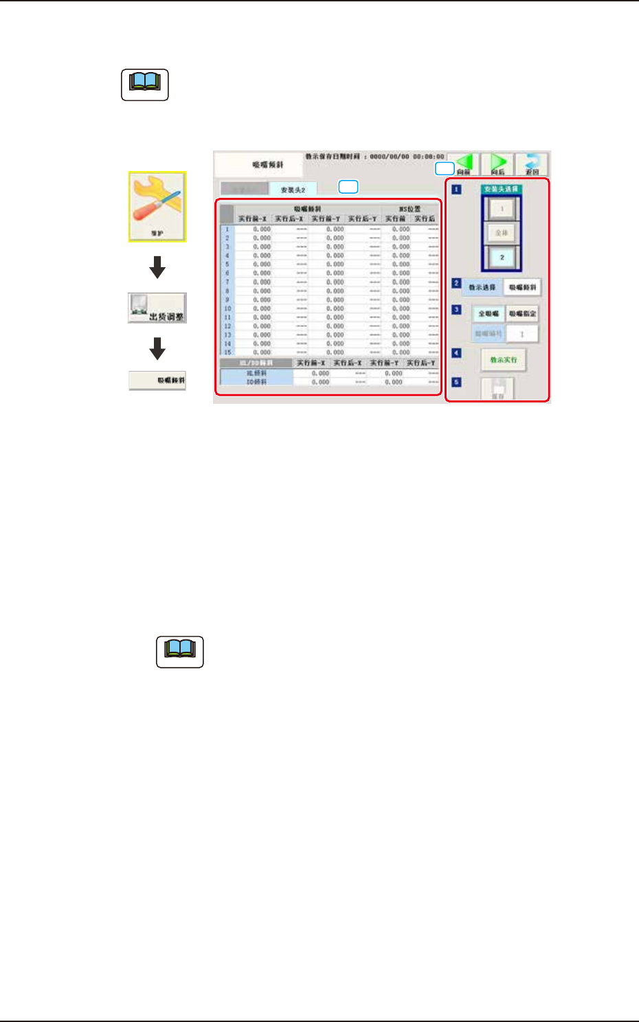 在“吸嘴倾斜”界面中对补正吸嘴倾斜或 NS 位置的补正数据进行教示。