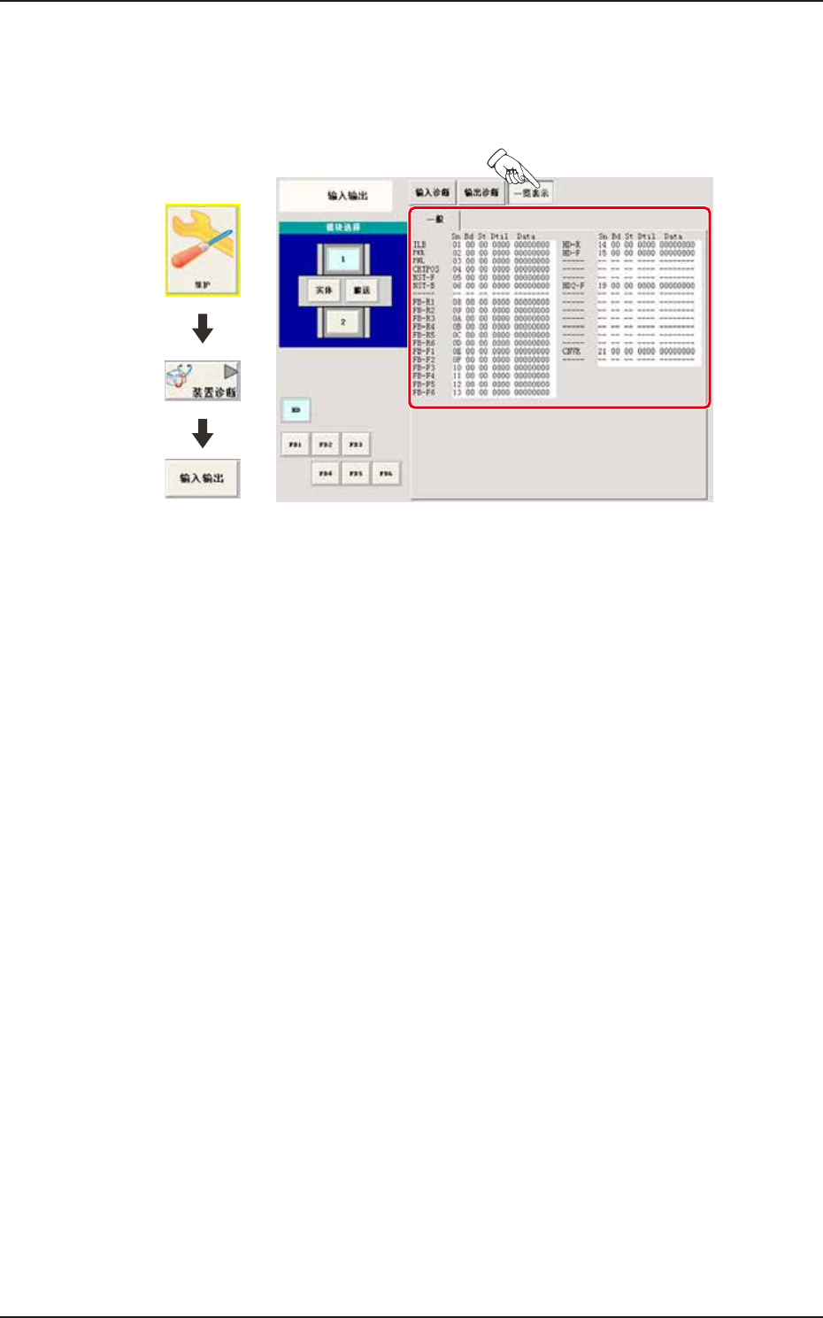 在“输入输出”界面中按 [ 一览表示 ] 按钮,显示如下页面,以一览形式显
