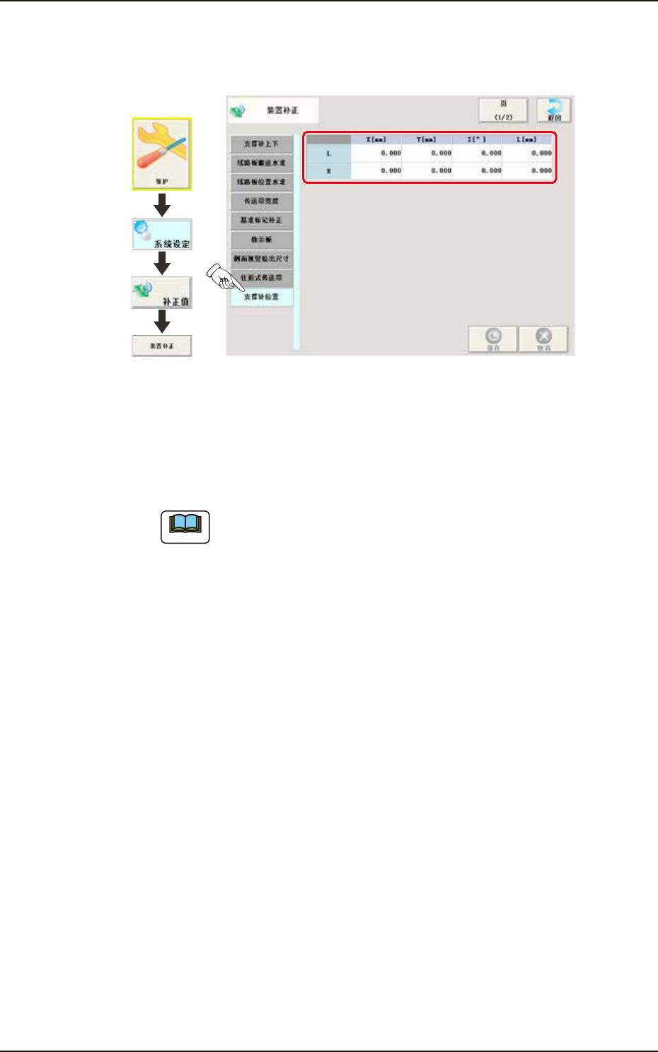 193-3100 CUKYX 2.1 装置补正 2-13 2.1.10 基准标记 - 吸取 要 点  选择的是多功能安装头时,不显示本页面。  在“装置补正”界面中选择“基准标记 - 吸取”选项卡,显示如下页面。 界面展开 [1] [2] F3214-CUKYX-00 [1] XY 减速率 [ 吸取位置 ] 0[%] ~ 45[%] 显示 XY 减速率。 [2] 安装头 1、2 X[mm]、Y[mm] 对安装头从基准标记向吸取位置移…