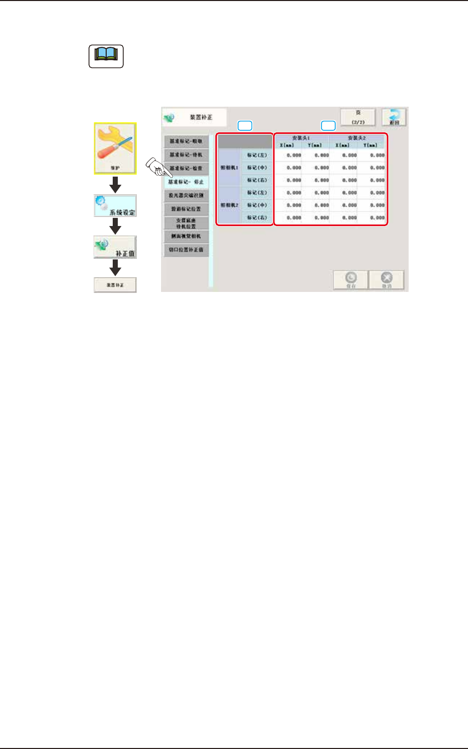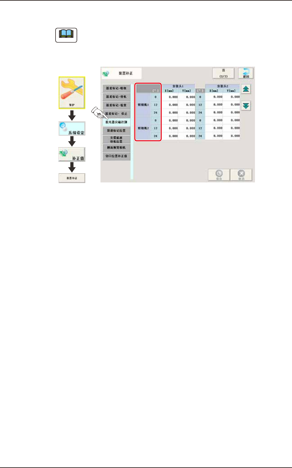 12°为单位显示与各相机对应的安装头 1、2 的补正值。