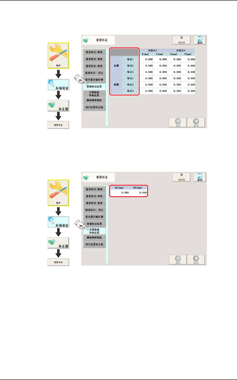 在“装置补正”界面中选择“滑道标记位置”选项卡,显示如下页面。