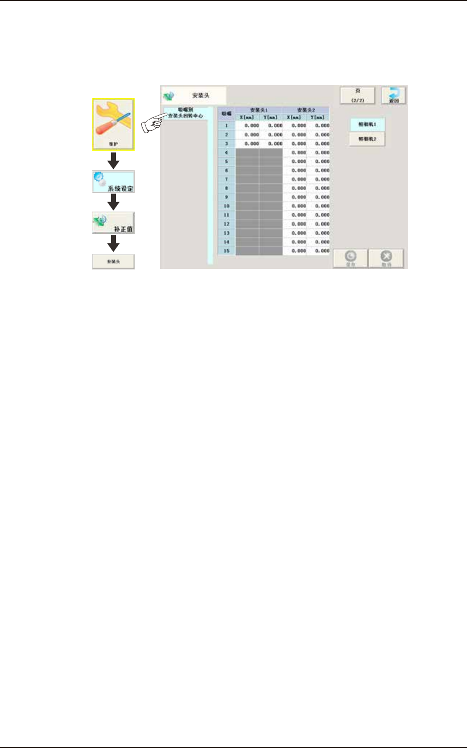在“安装头”界面中旋转“吸嘴别安装头回转中心”选项卡,打开如下页面。