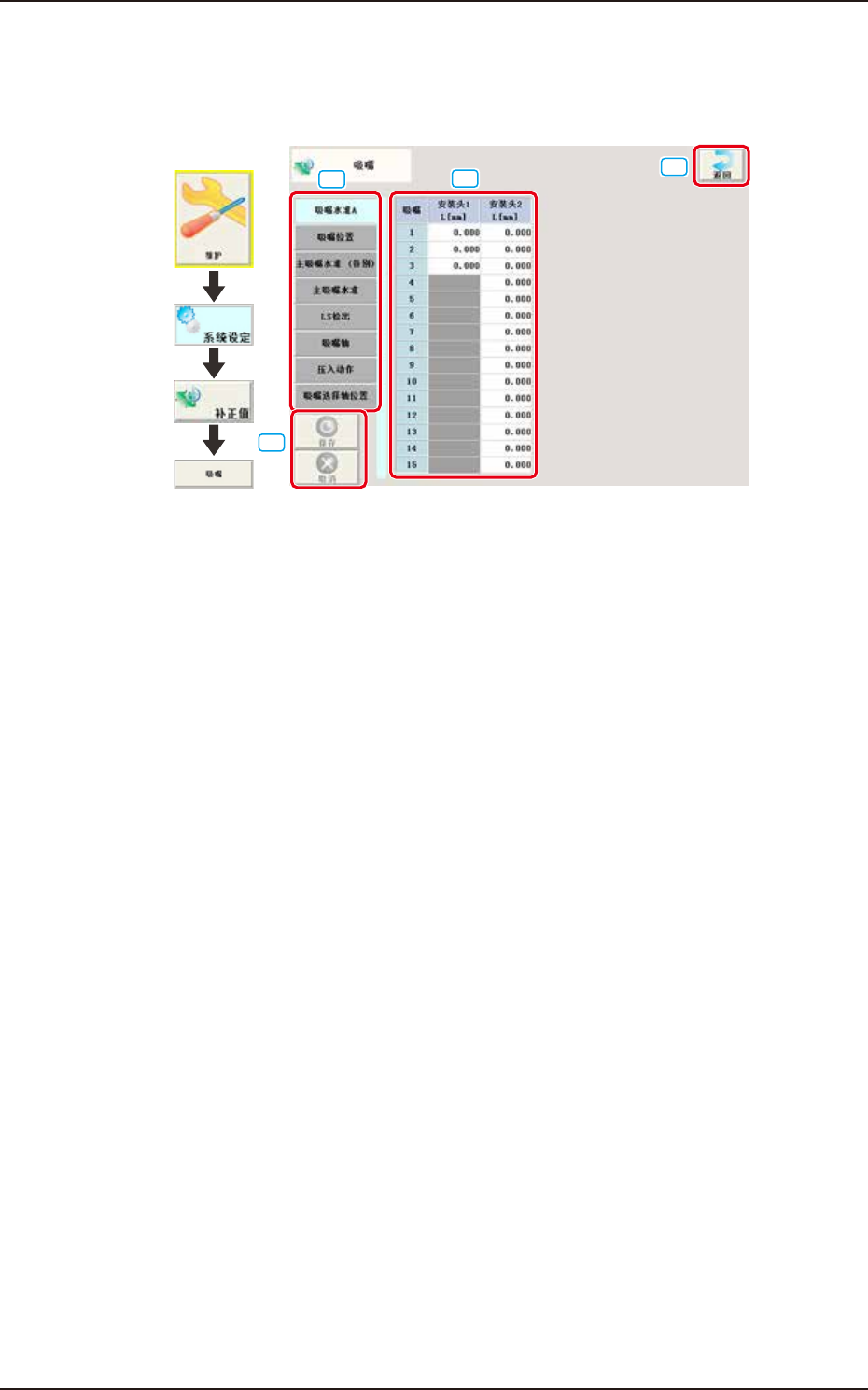 在“补正数据”界面按 [ 吸嘴 ] 按钮,显示如下界面。