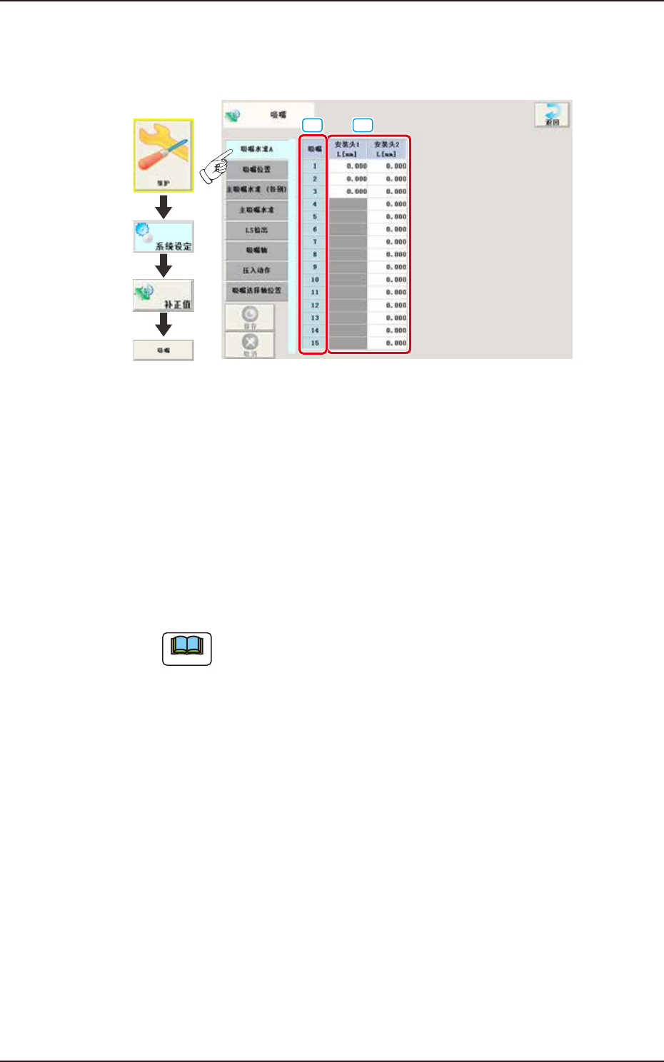 在“补正数据”界面按 [ 吸嘴 ] 按钮,显示如下界面。