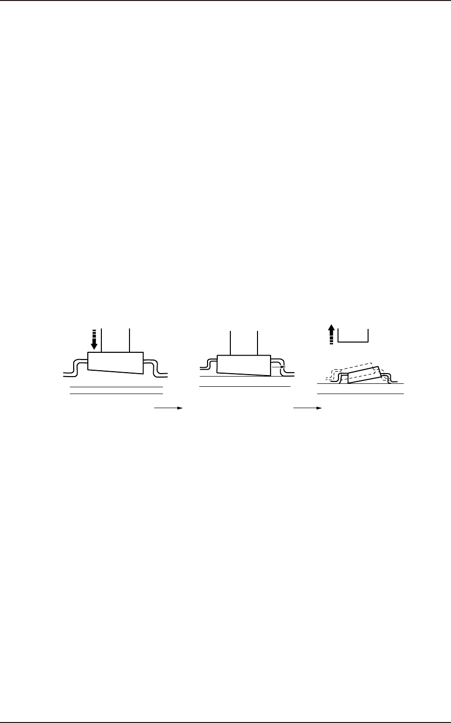 193-41 10 CUKYX 3.1 贴装不良的原因与对策 5-10 (2) 线路板上元件缺件的情况 (2-1) 掌握发生的状況 元件缺件可能有如下三种 现 象。 • 贴装时提起了元件。 • 因贴装时线路板震动以及真空破坏导致元件被弹飞。 • 在贴装后传出线路板的过程中元件被弹飞。 这 些 现 象的共同点是,相 对 于元件的尺寸来说,与 线 路板 ( 锡 膏)的 接触面 积 越小的元件越容易 发 生。 如下图所示, 若是方形元件 …