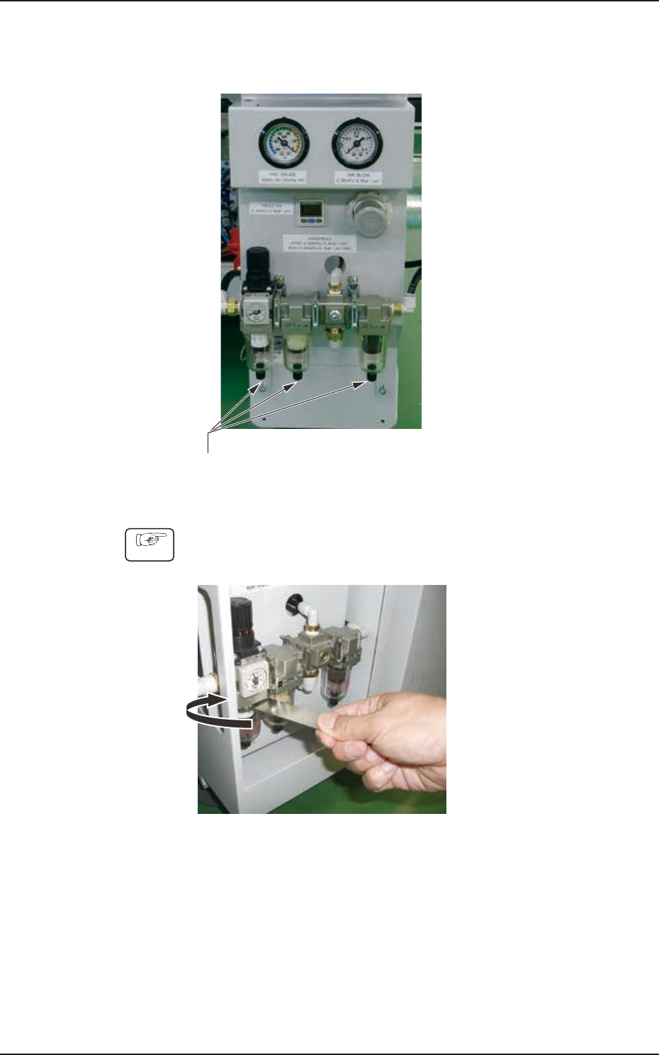 193-41 10 CUKYX 4.1 气 源 1-17 4.1.3 排水口的清洁 周期 : 每周 ( 所需时间 :5 分钟 ) 盖子 排水口 F4109-CUKYX-00 步 骤 请准备容器等,向下拔出各个滤盒下部的盖子,从排水口排水。