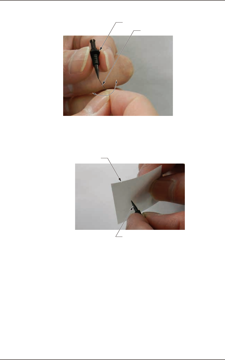 193-41 10 CUKYX 5.5 利用针规清洁高速吸嘴孔部 1-69 (3) 将针规沿吸附口的纵方向移动针规,清除内部的堵塞物。 针规 高速吸嘴 F4166-CUKYX-00 (4) 对吸嘴进行喷气吹除脏污。 ( 用纸胶带粘付高速吸嘴前端的细小脏污,将其清除。) 纸胶带 高速吸嘴 F4167-CUKYX-00