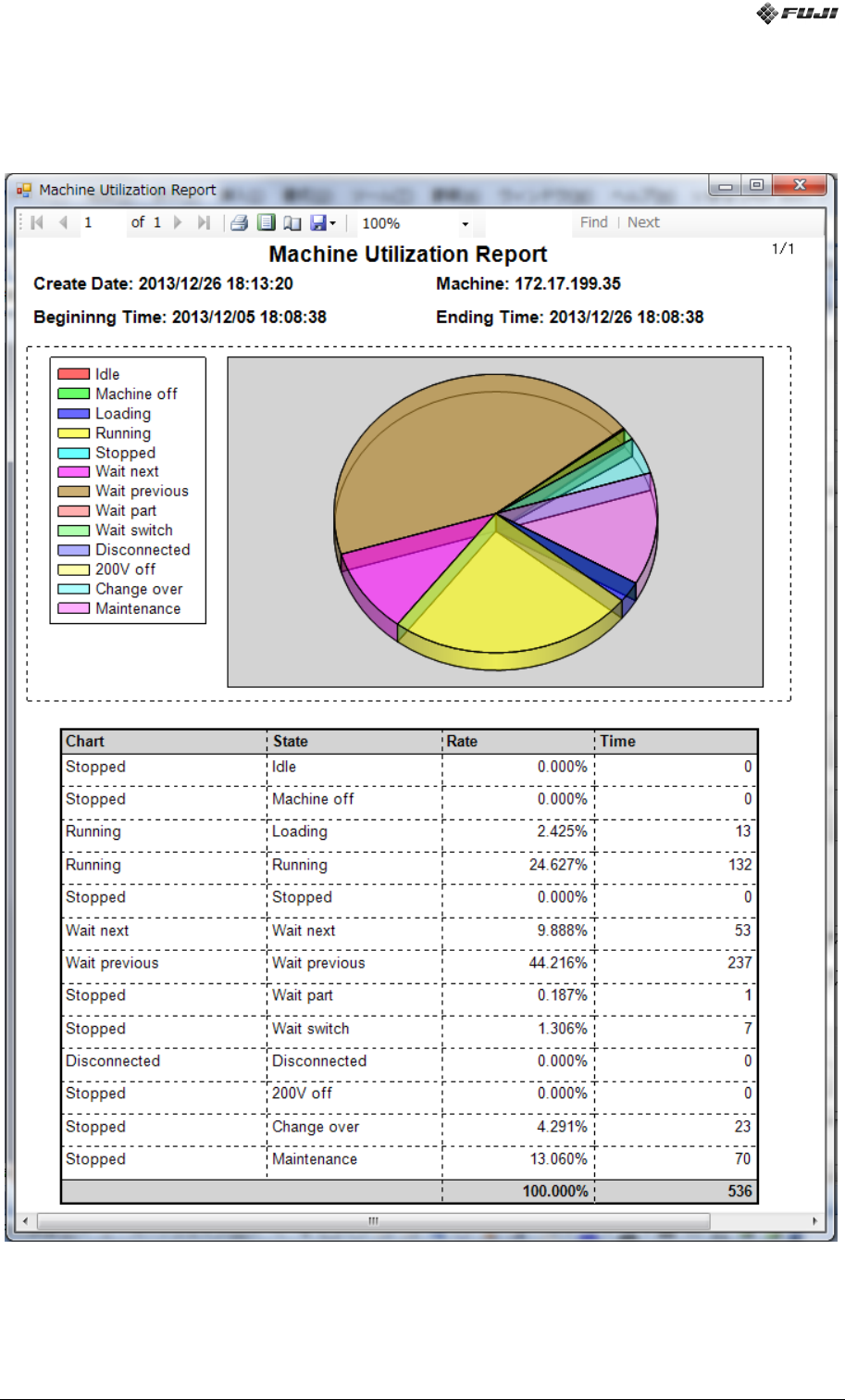 - 14 - USR-SFAV PIV-002S0 【 Machine U tilization 报 告中的项目】 No 项目 名 说明 1 Chart 机器状态的大致分类。 具体请参考下表 — 【 Chart 的含义】 。 2 State 比 Chart 更具体的机器状态 。 具体请参考下表 — 【 State 的含义】。 3 Rate 某 State 在所有 State 中所占的时间百分比。 计算方法如下。 [ 单位 :%] 100…