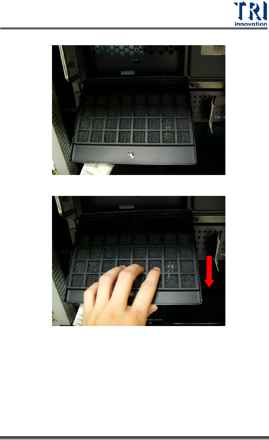 Test Research Inc. 步驟 5. 將電腦濾網取出,以空氣槍去除濾網上之灰塵,防止電腦散熱不 良。 4 TR7500 Series User Guide ‐‐ Maintenance