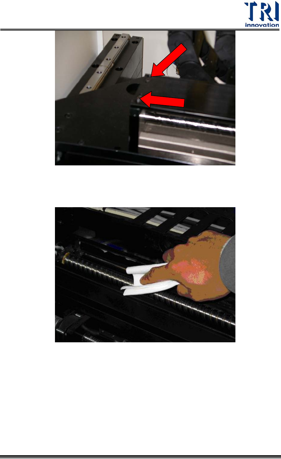 Test Research Inc. 螺絲位置 步驟 3. 用乾淨擦拭布將滾珠螺桿及滑軌內舊油擦拭乾淨 TR7500 Series User Guide ‐‐ Maintenance 9