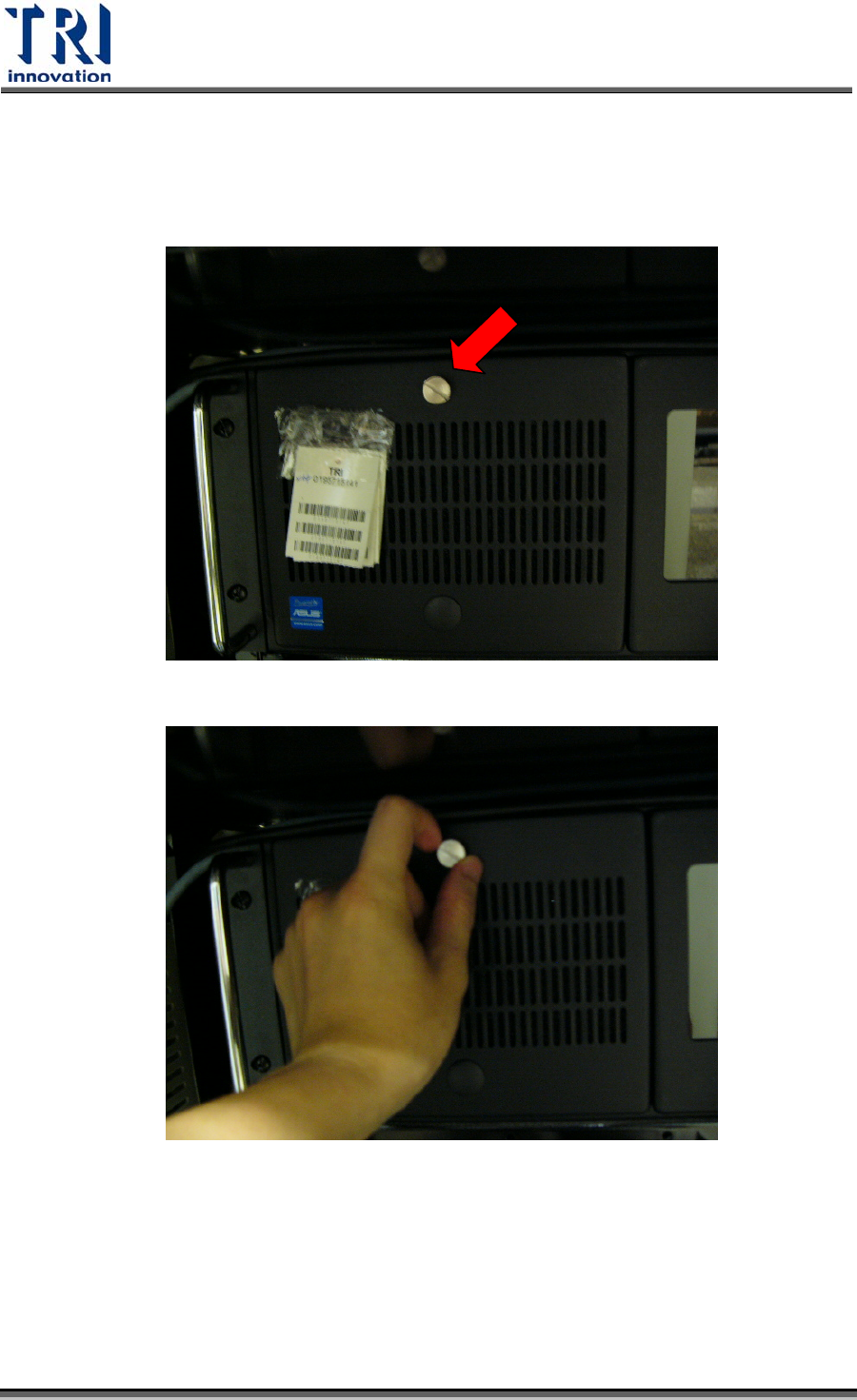 Test Research Inc. 1.2 清潔電腦濾網 z 將電腦濾網取出,以空氣槍去除濾網上之灰塵,防止電腦散熱不良。 步驟 1. 螺絲位置 步驟 2. 放鬆螺絲 2 TR7500 Series User Guide ‐‐ Maintenance