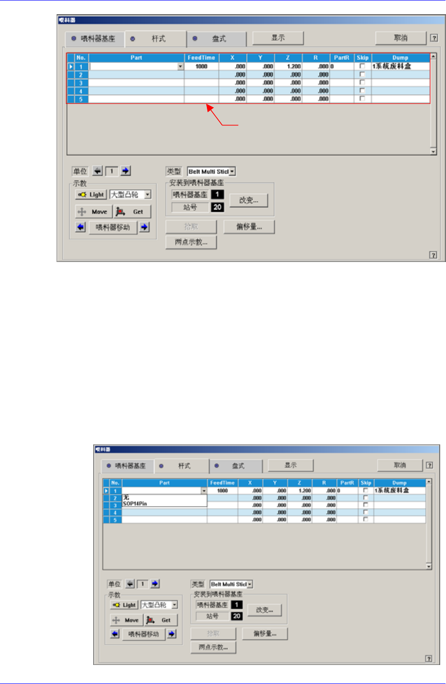 该Slot上装有管式喂料器时,选择Stick Feeder供给部件的Dump Box。 可
