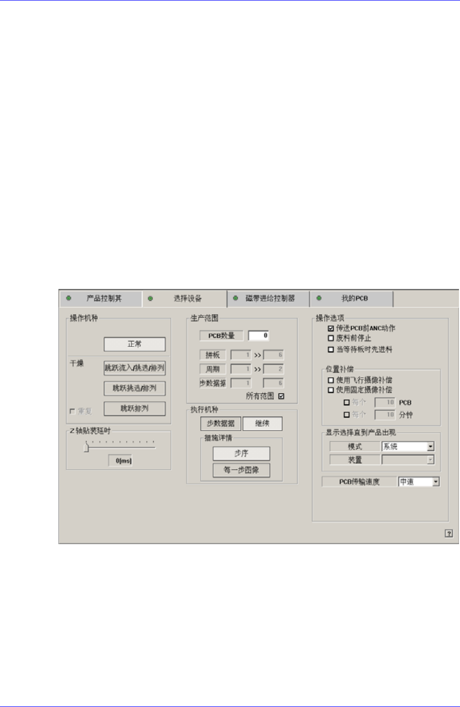 作业中选择此功能,则完成当前贴装领域内的 PCB贴装作业后,暂停设备