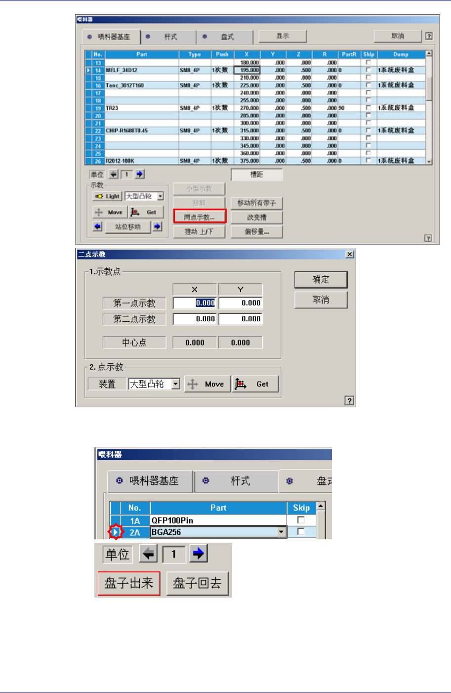 Samsung Component Placer SM320 Administrator ’ s Guide Tray Feeder 的拾取点示 教 Pallet Out: 选择该元 件后,单击 <Pallet Out> 按钮。 ket osition: 针对 Pallet 的 3 个位置进行 2Point Teaching 。 Poc P 12-16