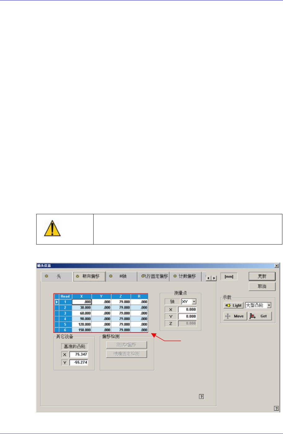 执行所有校正之前最先应设定 Head的Z轴偏移和R轴偏移。 在这里提示的是利