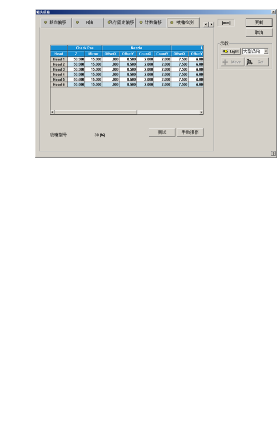 表示检查是否存在吸嘴时该贴片头的 Z 轴高度,以 PCB 上面到贴片头的心